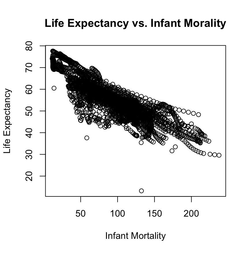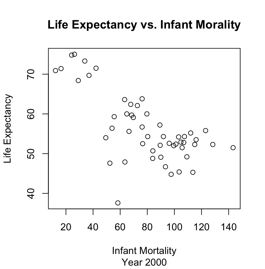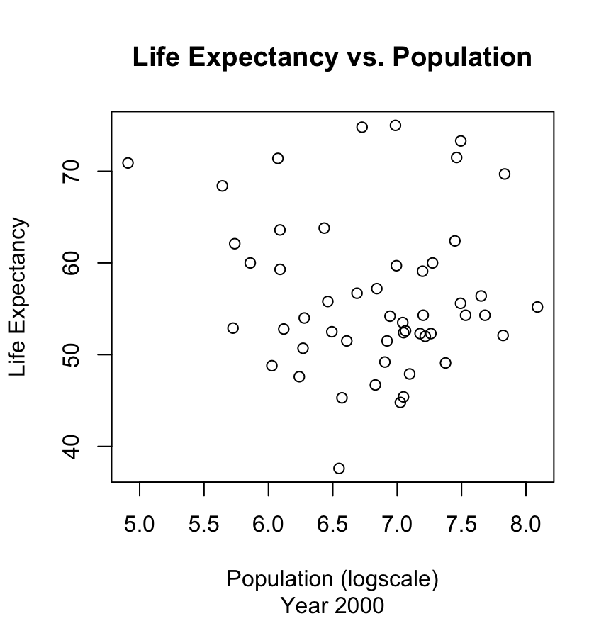 plot(log10(population_lifeexpec2000Spopulation), infmortality_lifeexpec2000$life_expectancy,
